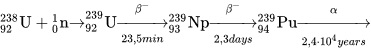 При дальнейшем поглощении нейтронов 239Pu превращается в 241Pu, который вследствие β-распада переходит в 241Am.