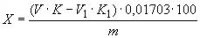 K и K1 - коэффициенты поправки для приведения молярных концентраций растворов серной или соляной кислоты и гидроокиси натрия к концентрации точно c(1/2H2SO4) или c(НСl) и c(NaOH)=0,5 моль/дм3;