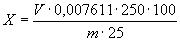 Массовую долю роданистого аммония (X) в процентах вычисляют по формуле