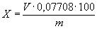 Массовую долю уксуснокислого аммония (X) в процентах вычисляют по формуле