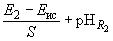 Рассмотрим гальванический элемент: электрод сравнения - насыщенный раствор KСl - раствор R1Pt*H2. Для буферных растворов R1 и R2 с известными значениями pH - соответственно pHR1 и pHR2, измеренные значения разности потенциалов составляют соответственно E1 и E2.