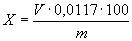 Массовую долю метаванадиевокислого аммония (X) в процентах вычисляют по формуле