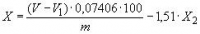 где V - объем раствора гидроокиси натрия концентрации точно 0,5 моль/дм3, израсходованный на титрование, см3;