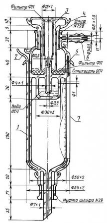 1 - ампула; 2 - колокол; 3 - подставка; 4 - чаша; 5 - термокарман; 6 - аэрозольный фильтр;