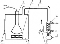 1 - аппарат для определения нелетучего остатка; 2 - регулятор напряжения РНШ-55; 3 - термопары;