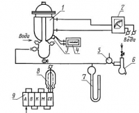 4 - потенциометр; 5 - кран; 6 - водоструйный насос; 7 - манометр; 8 - фильтр ФПФ или ФПП;
