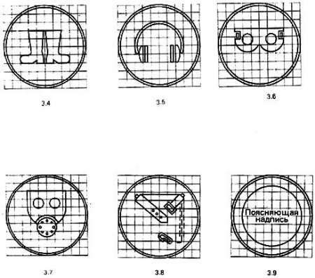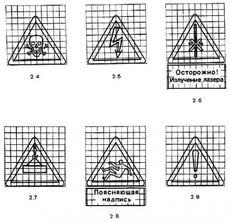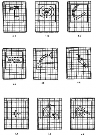 4.6. Знаки безопасности должны иметь плоскую или объемную конструкцию. В обоих случаях символы и поясняющие надписи следует наносить на одной или обеих сторонах знака.