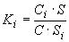 Для определения относительных градуировочных коэффициентов готовят не менее 8 искусственных смесей концентраций, близких к технологическим, снимают по три параллельные хроматограммы при условиях, указанных в п.3.5.3, и вычисляют относительные градуировочные коэффициенты (K1) по формуле