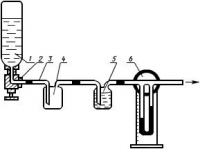 Соединяют баллон с анализируемой пробой вентилем вниз с краном-дозатором. Устанавливают кран-дозатор в положение "отбор пробы", открывают баллон и продувают анализируемую пробу в течение 1,5 мин с объемным расходом (60±5) см3/мин. Затем вводят пробу в колонку, одновременно включают секундомер и закрывают вентиль баллона.