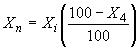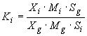 Массовую долю каждого компонента (Xi) в процентах вычисляют по формуле
