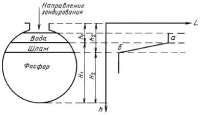 где h2 - расстояние от границы раздела шлам-фосфор до фланца люка, см.