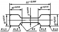 Относительное удлинение при разрыве строганой пленки определяют по ГОСТ 11262 на образцах толщиной (0,100±0,005) мм, вырубленных в поперечном направлении пленки, изготовленной по п.4.2.7 штампом с шириной рабочей части 5 мм, длиной 20 мм равномерно на отрезке строганой пленки, равном 1 м (см. чертеж).![]()