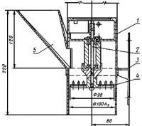 Рыхлитель (см. чертеж) состоит из цилиндрического корпуса 1 диаметром 100 мм, в верхней части которого имеется бункер 5 для загрузки фторопласта-4. Внутри цилиндра на валу 2укреплен диск-рыхлитель 4 с шипами. Диск приводится во вращение электродвигателем. Скорость вращения диска 3000 об/мин. Рыхлитель крепится на кронштейне 3. Материал рыхлителя - нержавеющая сталь.