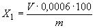 Массовую долю кислот в пересчете на CH3COOH (X1) в процентах вычисляют по формуле