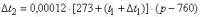- поправка на выступающий над пробкой столбик ртути термометра °С.