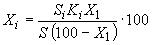 4.3.4.4. Массовые доли примесей в трифтортрихлорэтане (Xi) в процентах вычисляют по формуле