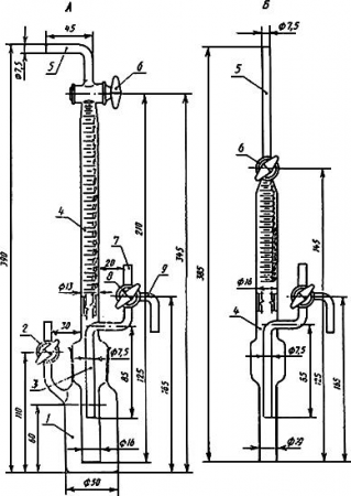 На черт.5 приведена схема аппарата, предназначенного для определения содержания воды в хлоре. Аппарат включает следующие части: