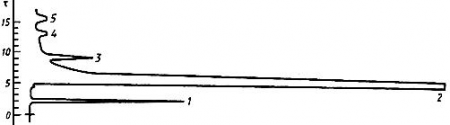 1 - хлороформ; 2 - хлорпикрин; 3 - 1,1,2-трихлорэтан; 4, 5 - неидентифицированные примеси