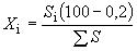 Массовую долю каждого компонента (Xi) в процентах вычисляют по формуле