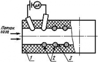 1 - корпус чувствительного элемента; 2 - платиновые геликоидальные электроды; 3 - гидроскопическая пленка (пятиокись фосфора)