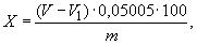 где V - объем раствора соляной кислоты концентрации точно 0,02 моль/дм3, израсходованный на титрование, см3;