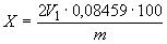 где V - объем раствора соляной кислоты молярной концентрации точно 0,5 моль/дм3, израсходованный на титрование, см3;