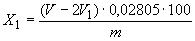где 0,02805 - масса гидроокиси калия, соответствующая 1 см3 раствора соляной кислоты концентрации точно 0,5 моль/дм3, г.