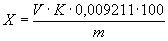 Массовую долю 1-водного щавелевокислого калия (X) в процентах вычисляют по формуле