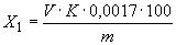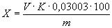 где V - объем раствора соляной кислоты концентрации 0,1 моль/дм3, израсходованный на титрование, см3;