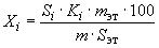 Массовую долю каждого компонента (Xi) в процентах вычисляют по формуле