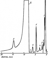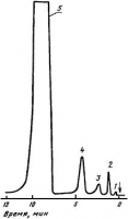 2 - изопропиловый спирт; 3 - Вода; 4 - изоамиловый спирт ("внутренний эталон"); 5 - диметилформамид (растворитель)