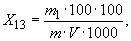 Массовую долю титана (X13) в процентах вычисляют по формуле