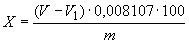 Массовую долю роданистого натрия (X) в процентах вычисляют по формуле