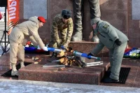 Частица огня для зажжения доставлена с мемориального комплекса тоболякам, погибшим в годы Великой Отечественной войны 1941–1945 гг., на площади Победы в Тобольске.