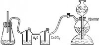 Перед началом определения установку проверяют на герметичность. Для этого трехходовым краном соединяют газовую бюретку через газоотводную трубку с реакционной колбой и атмосферой. Устанавливают уровень запорной жидкости на нулевой отметке бюретки. Затем сообщенные между собой колбу и газовую бюретку отключают от атмосферы и опускают уровень жидкости в уравнительном сосуде на 15-20 см ниже уровня жидкости в газовой бюретке. Отмечают уровень жидкости в газовой бюретке и, если в течение 15 мин он меняется не более чем на 0,2 см3, реакционную колбу считают герметичной. Водяная рубашка газовой бюретки должна быть заполнена дистиллированной водой.