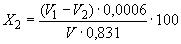 V2 - объем раствора гидроокиси калия концентрации точно 0,01 моль/дм3, израсходованный на титрование в контрольном опыте, см3;