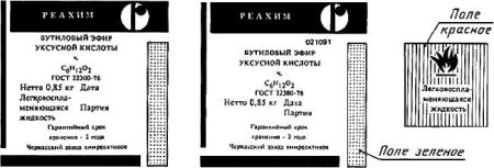 В случае упаковывания в транспортную тару различных продуктов в потребительской таре при маркировке транспортной тары на торцевой стороне указывается лишь надпись "Реактивы" без перечисления всех продуктов. Совмещенное упаковывание различных видов продуктов в транспортную тару допускается лишь тогда, когда совмещенное упаковывание этих продуктов разрешается соответствующими правилами перевозок на применяемом виде транспорта.