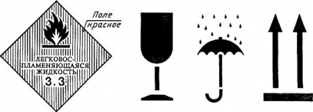 На упаковку с опасным грузом, кроме маркировки, предусмотренной ГОСТ 14192, в зависимости от вида и степени опасности груза, а также группы его фасовки должна быть нанесена транспортная маркировка по ГОСТ 19433.