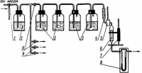 Установку для увлажнения собирают, как показано на черт.3. Склянки с водой и кислотой должны быть заполнены примерно на половину объема.