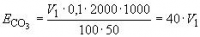 где V1 - объем раствора соляной кислоты концентрации точно c(НСl)=0,1 моль/дм3 (0,1 н.), израсходованный на титрование с индикатором метиловым красным, см3.