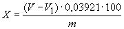 Массовую долю двойной сернокислой соли закиси железа и аммония (X) в процентах вычисляют по формуле