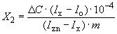 Массовую долю цинка (X2) в процентах вычисляют по формуле