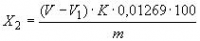 Йодное число (X2) в граммах йода на 100 г продукта вычисляют по формуле