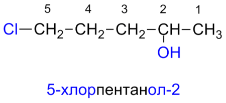 2. Родительский углеводород нумеруют в таком направлении, чтобы гидроксильная группа получила наименьший номер в названии. (Если в соединении имеются функциональные группы старше гидроксильной, то это правило применяется к старшей функциональной группе.)