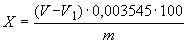 Массовую долю хлор-ионов в углекислом стронции (X) в процентах вычисляют по формуле