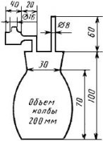 Газовую бюретку и уравнительную склянку (черт.1) наполняют дистиллированной водой, склянку Дрекселя (черт.2) - серной кислотой в таком количестве, чтобы конец полого шарика был погружен в кислоту в склянке на 4-5 мм. Краны смазывают вакуумной смазкой.